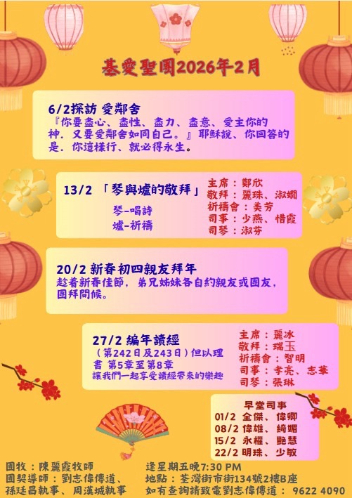 教會聚會一覽 (Zoom連結)