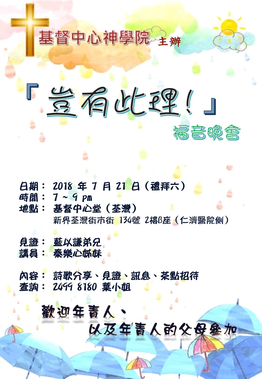 請預留時間出席,只有你才能令這個團契更豐富更有滿足。